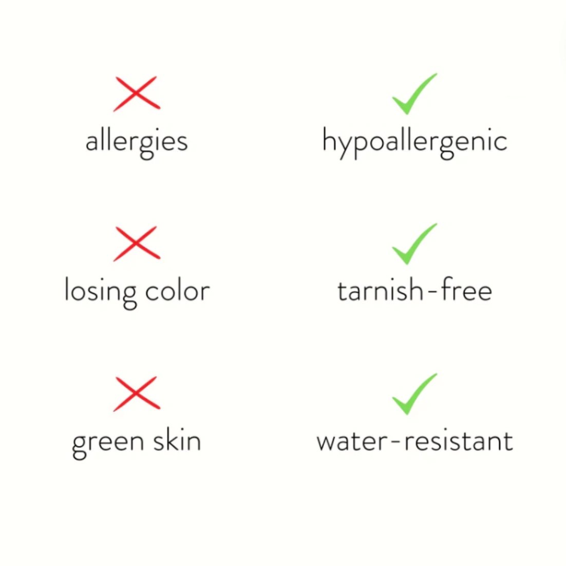 • Hypoallergenic, lead & nickel free